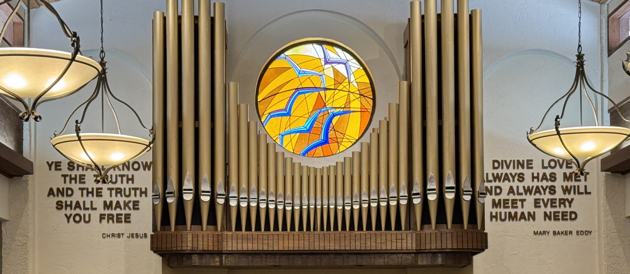 All are warmly welcome to attend our services. Each gathering includes inspirational music, hymns, prayer, and the reading of a Lesson-Sermon made up of passages from our pastors — the Holy Bible and Science and Health with Key to the Scriptures by Mary Baker Eddy.