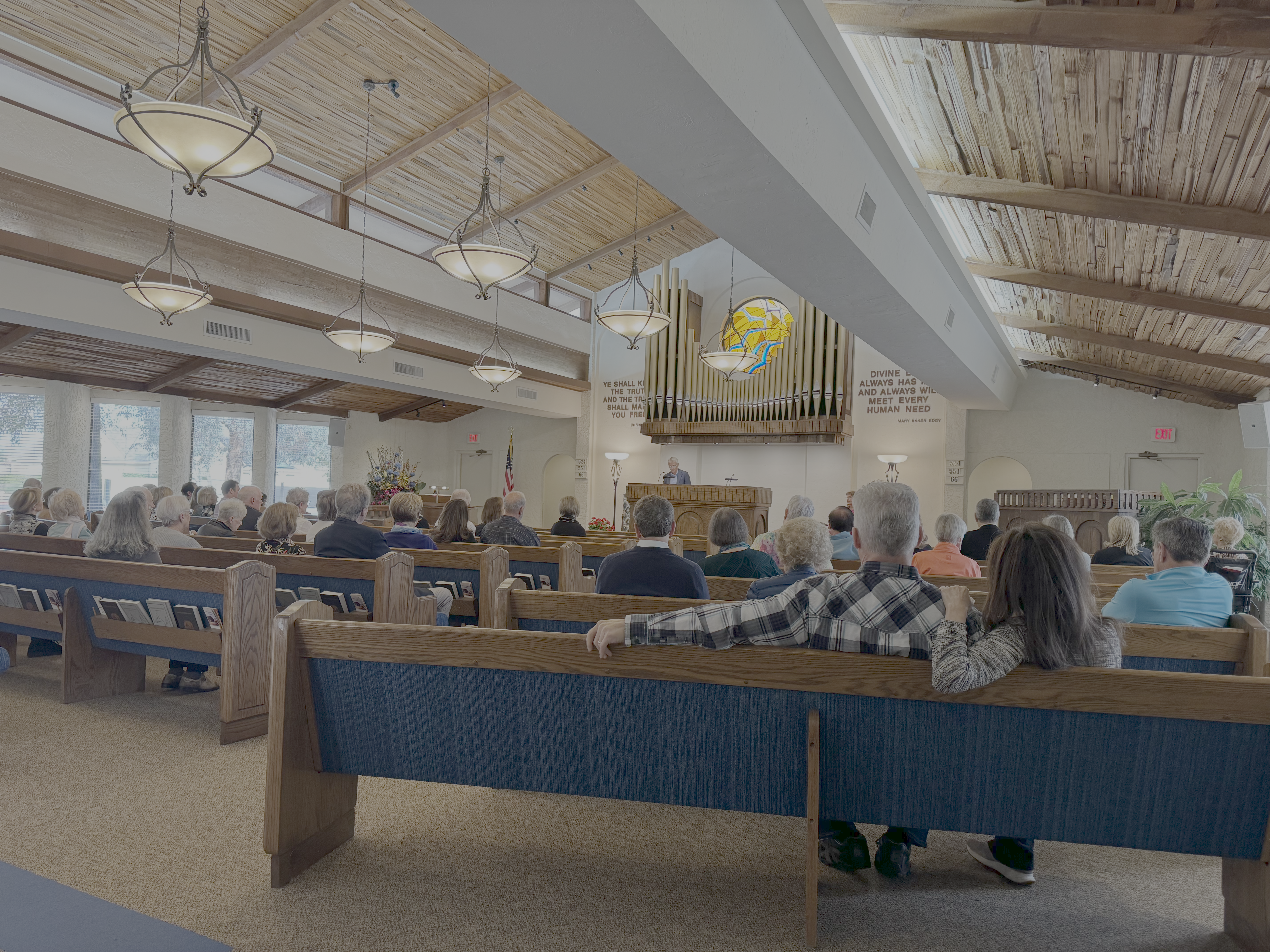 Wednesday testimony meetings begin with readings from the Bible and the Christian Science textbook on a topic of interest. During the second half of the hour-long meeting, those in attendance have the opportunity to tell how they have been helped and healed through their study, prayer, and application of Christian Science.